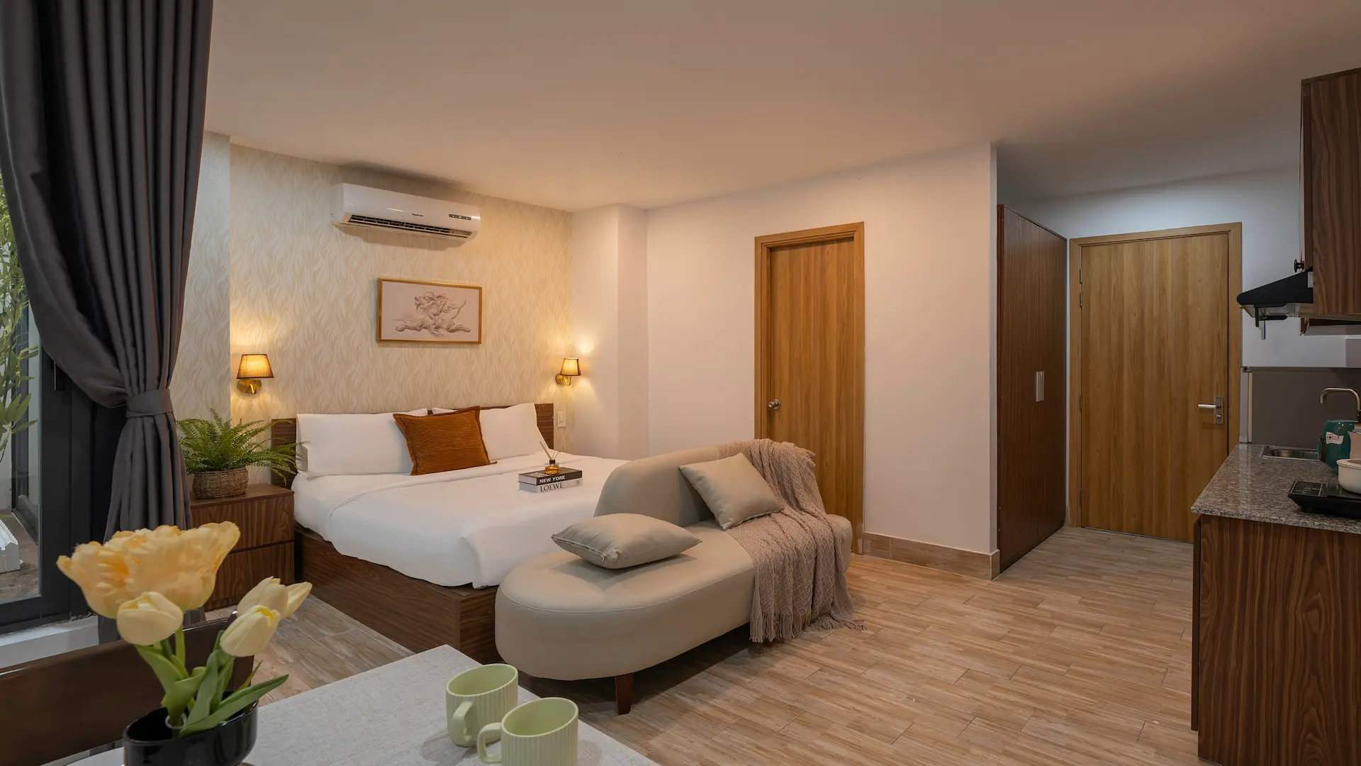 Trải nghiệm không gian sống được thiết kế tỉ mỉ, mang đến sự thoải mái, phong cách và bầu không khí boutique ấm áp — hoàn hảo cho cả kỳ lưu trú ngắn và dài ngày.